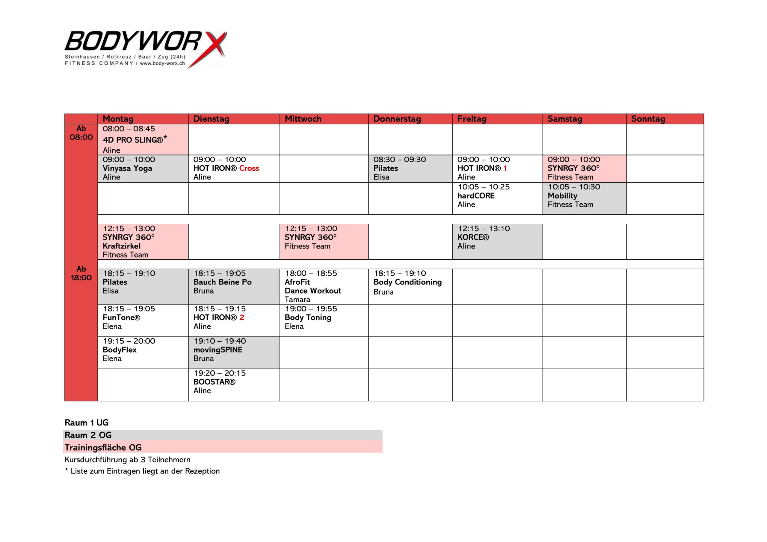 Die Kurse finden auf der Fläche statt und sind mit jedem Abo (auch Gold) besuchbar.